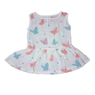 100% Organic Muslin Cotton Frock For Baby Girl | Butterfly | 6-12 months